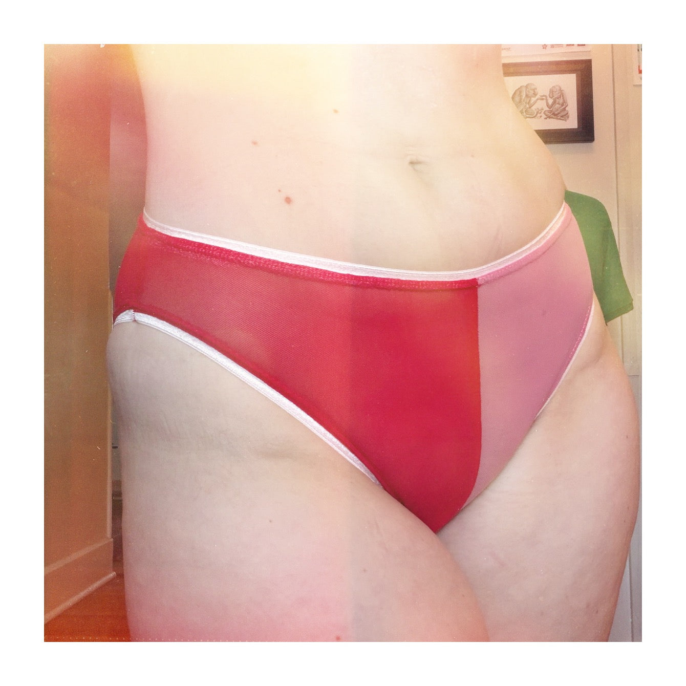 Pink & Red Mesh: Bikini Mid Rise